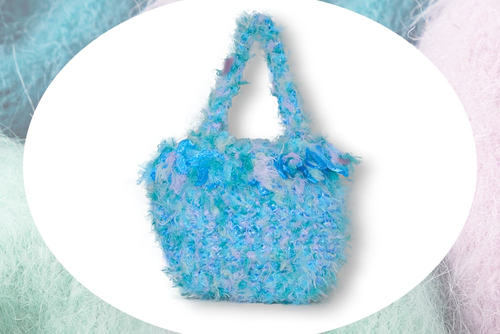 斬新な素材とカラーでまわりに差をつける個性的なバッグです。素材の良さと手編みならではの柔らかさが、フェミニンな雰囲気を生み出し、おしゃれ感がアップしています。